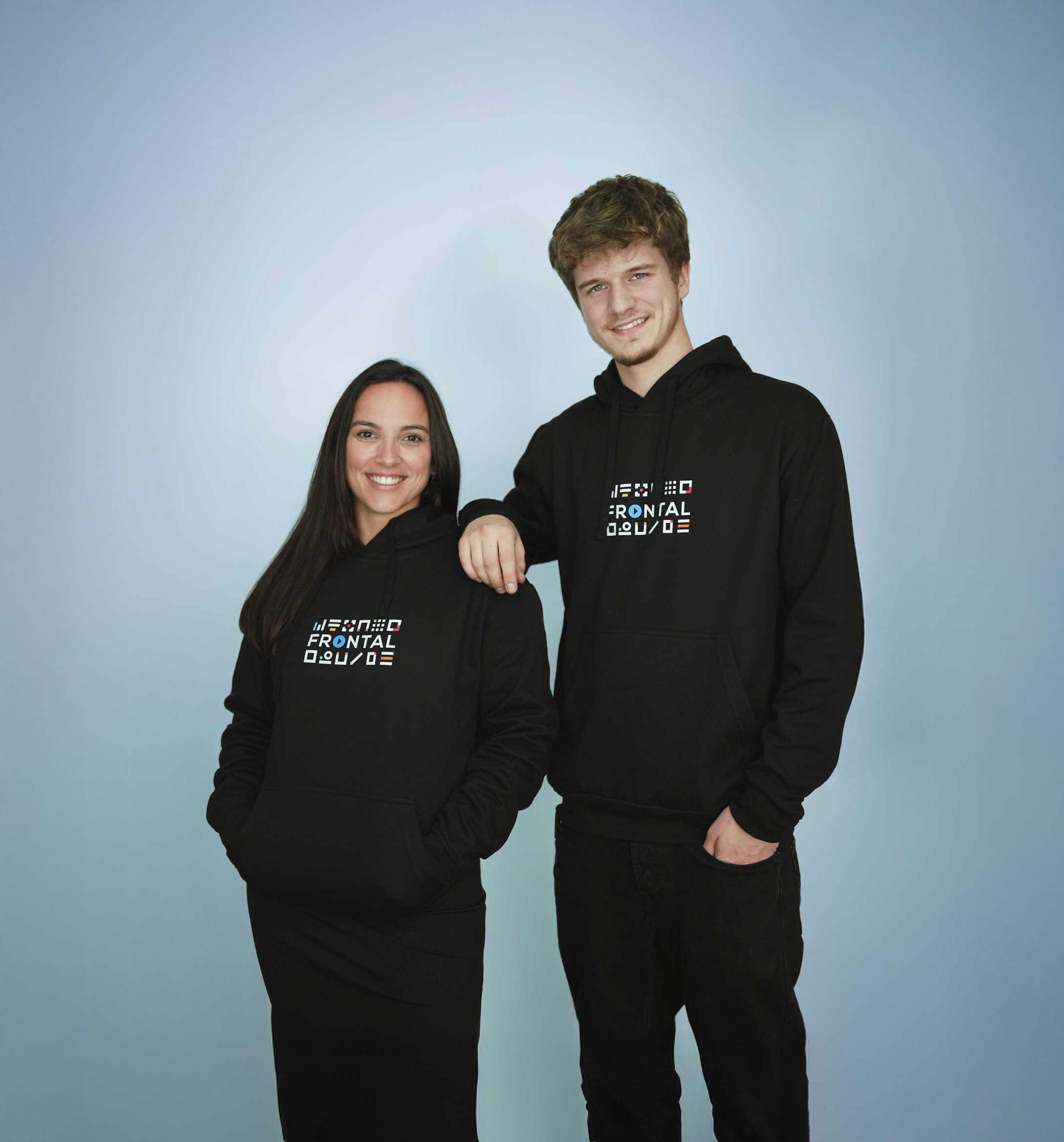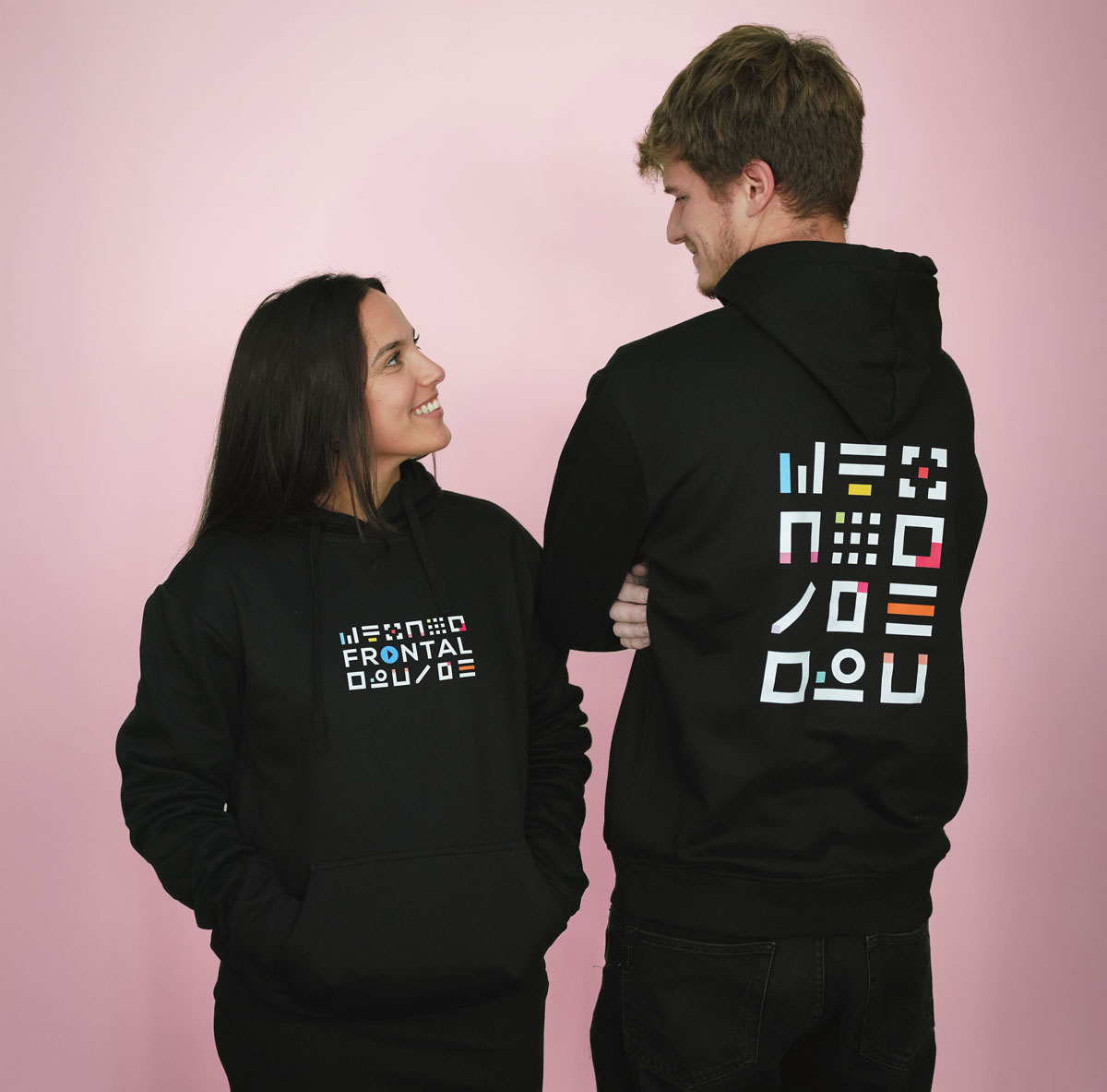 Camisola unissexo com capuz e bolso marsupial. Malha cardada com costuras laterais e cordão de apertar na gola. Punhos e parte inferior canelados e elásticos. Composição: 55% Algodão + 45% Poliéster Peso: ≈ 280 g/m² Guia de tamanhos